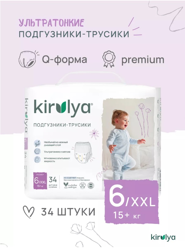 - Подгузники-трусики Kirulya Premium, размер XXL/6 (15+ кг), 34 шт 2035