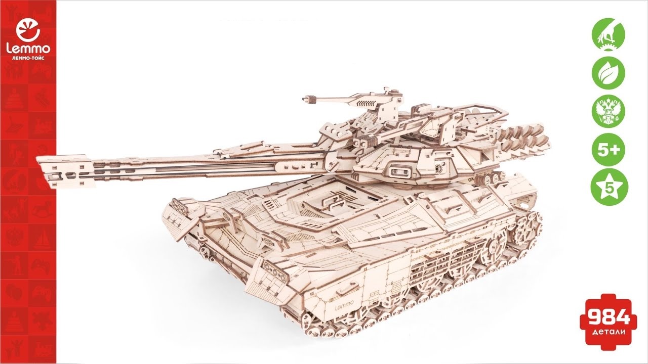 - Деревянный конструктор Lemmo Танк Хищник 984 деталей 0171