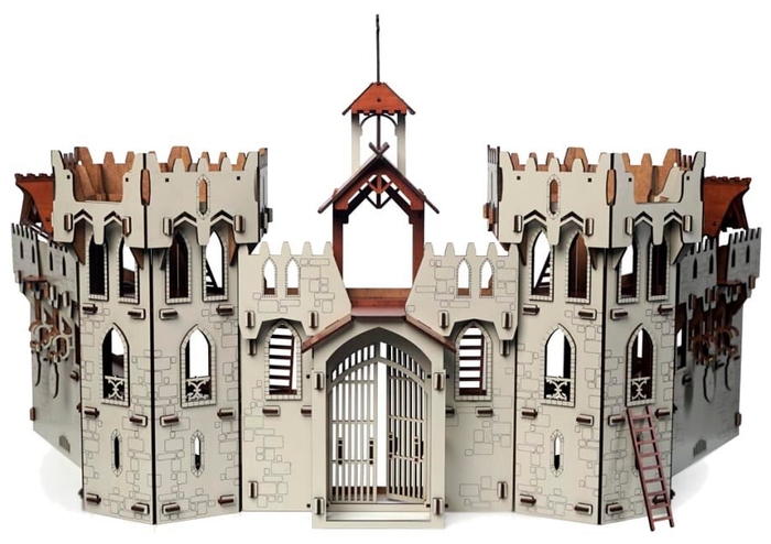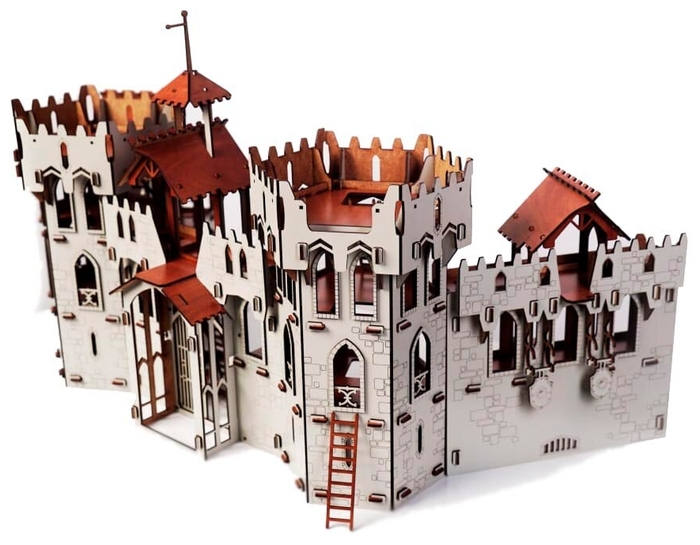 Набор состоит из пяти основных элементов: двух башен, центральной стены с главными воротами и двух защитных стен со стрелковыми вышками. Основная часть всех конструкций собирается без использования клея. Клеятся только декоративные накладки на окна. Все основные элементы замка не имеют между собой соединений, что позволяет самостоятельно расположить их между собой и изменить общую композицию на свое усмотрение.