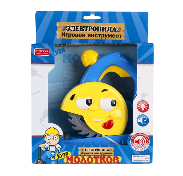 Веселая Электропила поет песенку, говорит забавные фразы, есть подвижные элементы.