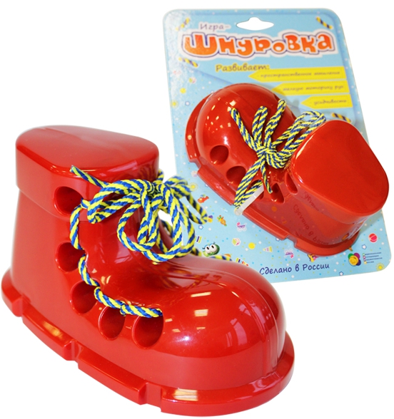 Игра-шнуровка Ботинок- увлекательная игра для малышей, в процессе которой малыш получает навыки шнурования, учится аккуратности и усидчивости, развивает логическое мышление и мелкую моторику рук. Размер 14х9х8 см.