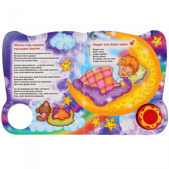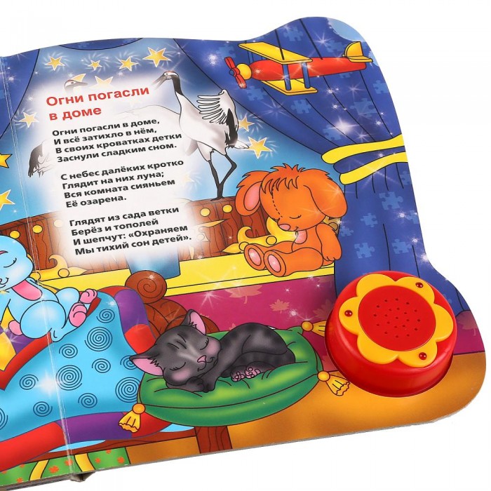 Ребёнок легко освоит включение звука: по нажатию на кнопку начинает проигрываться песенка, при втором нажатии звук выключится