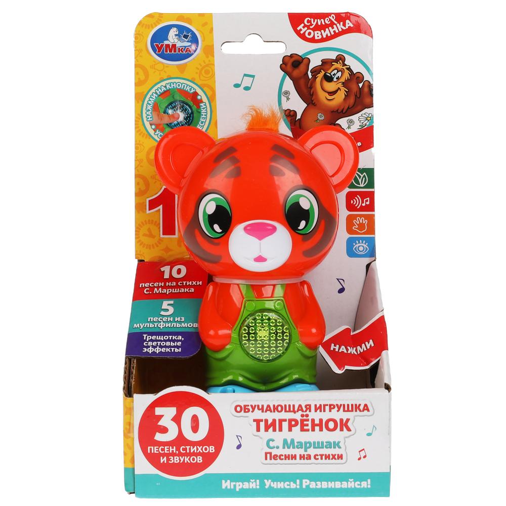 Очаровательный тигрёнок с головой-трещоткой и световыми эффектами непременно понравится Вашему малышу и займет его на долгое время. Ребёнок с удовольствием будет слушать песни на замечательные стихотворения Самуила Маршака, весёлые песенки из мультфильмов и забавные звуки.