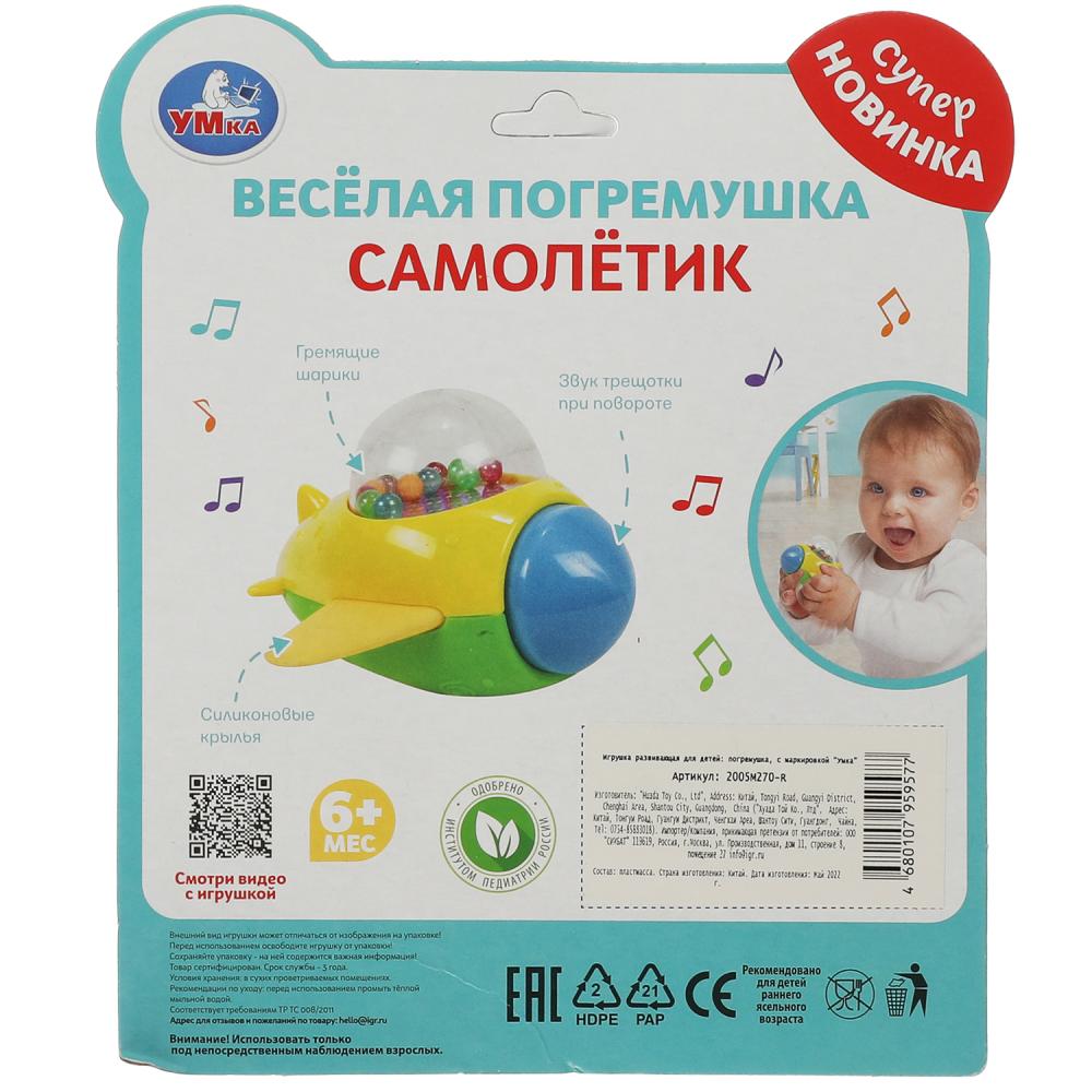 Весёлая погремушка «Самолётик» ТМ «УМка» разработана специально для самых маленьких: