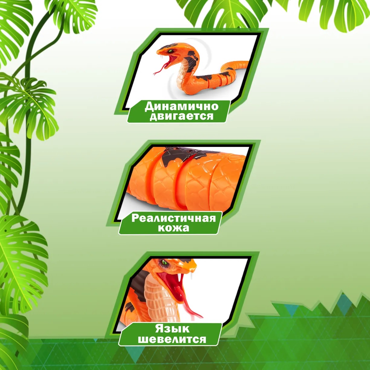 Отлично подходит для весёлых розыгрышей: спрячьте её под столом или в рюкзаке друга, чтобы услышать настоящий восторг и удивление. Ультрареалистичная змеиная кожа и устрашающий внешний вид делают её идеальным подарком для мальчика, который любит активные интерактивные игрушки.