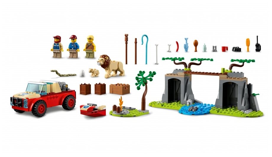 С набором «Спасательный внедорожник для зверей» LEGO® City (60301) дети могут стать повседневными героями. В наборе есть команда по спасению животных с участием героини сериала «ЛЕГО Сити. Приключения» Джессики Шарп, а также лев, львенок и змея с яйцом. Просто добавьте речной ландшафт, игрушечный водный мотоцикл и внедорожник, чтобы подготовить сцену для захватывающих приключений со спасением диких животных.
