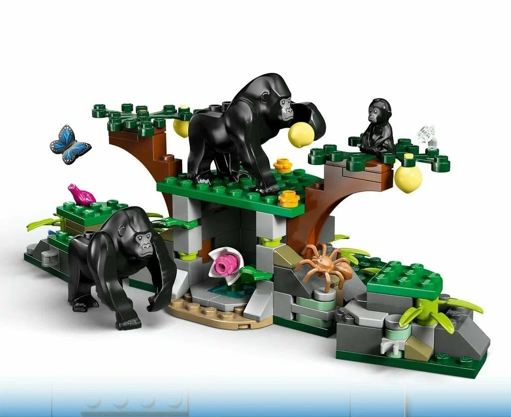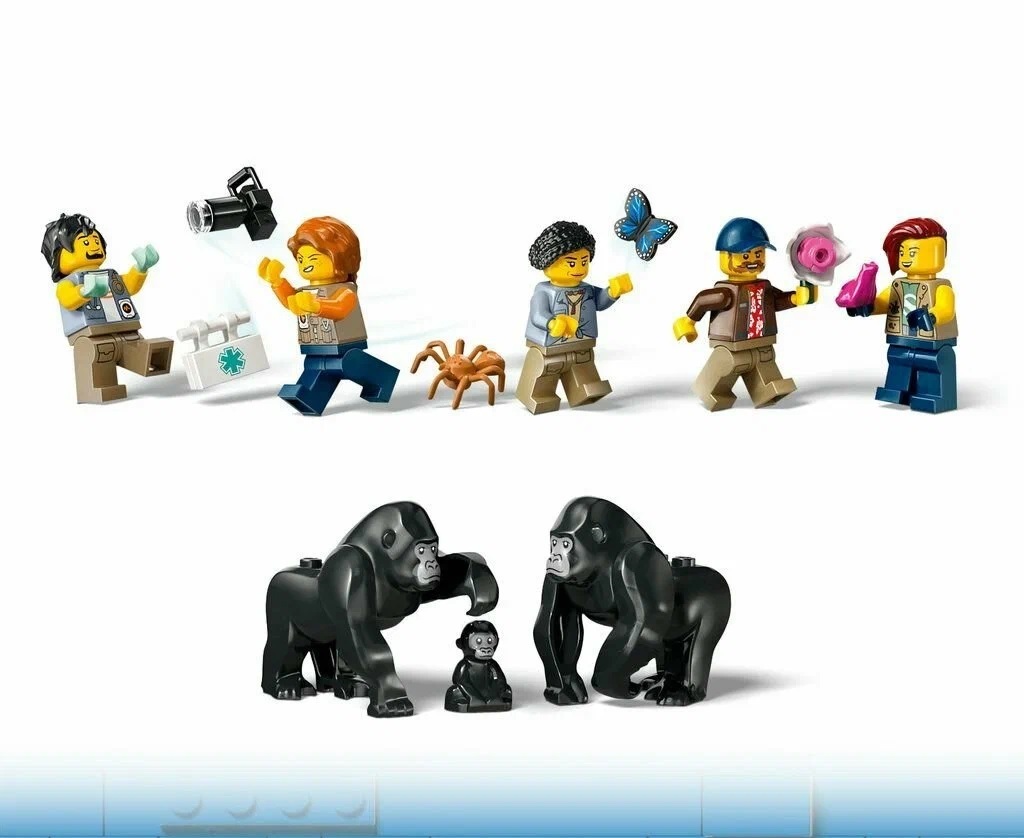 Подарите своему маленькому исследователю игровой набор LEGO City Вертолет Исследователь джунглей и базовый лагерь с реалистичным игрушечным вертолетом с синхронизированными двумя несущими винтами, 2 грузовыми отсеками и работающей лебедкой. В набор также входят мотоцикл, болотная лодка и базовый лагерь в джунглях, 5 минифигурок искателей приключений и 3 фигурки горилл, включая детеныша гориллы, для творческих игр и рассказывания историй.