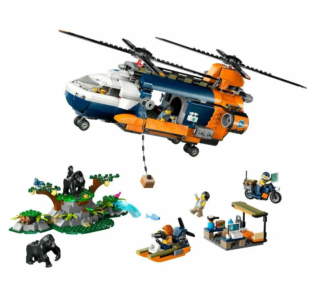 Конструктор Lego City Вертолет Исследователь джунглей и базовый лагерь 881 деталь 60437