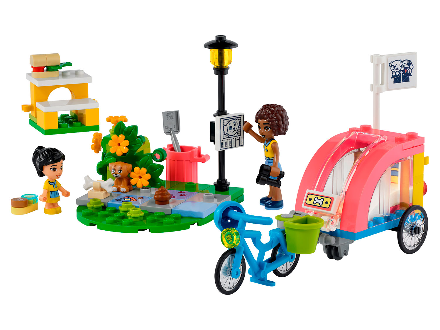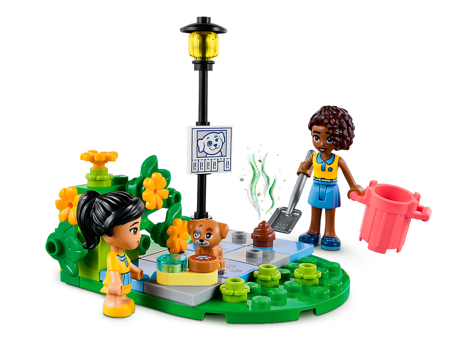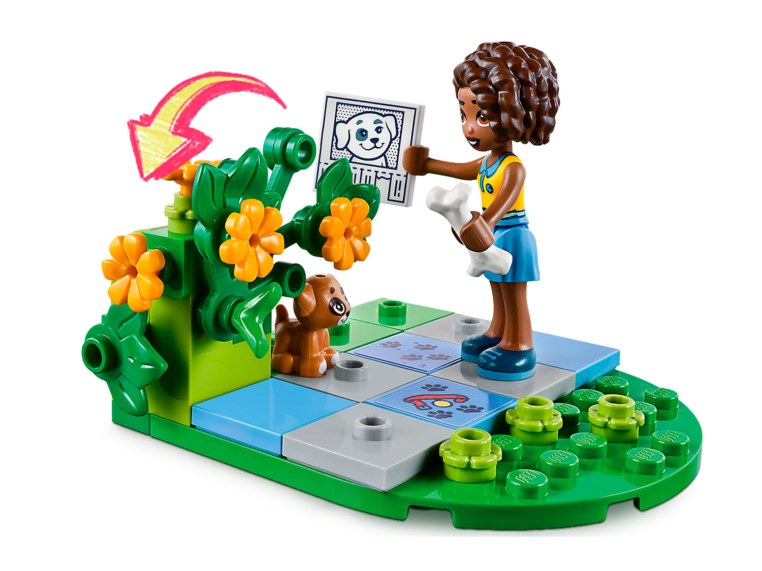 Также есть небольшая сцена в парке со скамейкой и кустом, который поднимается, чтобы показать потерянного щенка, а также аксессуары, которые помогут детям найти пса и позаботиться о нем.