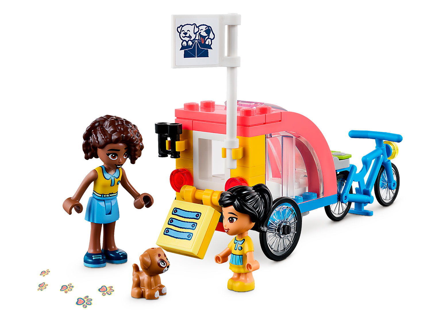 Этот крутой набор игрушек включает в себя спасательный велосипед для собак со съемным прицепом, который открывается спереди и сзади.