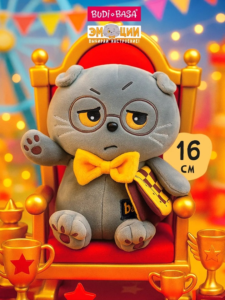 Кот Басик -гроссмейстер. Концентрация 100%. Очки, шахматная доска, строгий взгляд. Он не играет, он выигрывает! Его стихия - интеллектуальные поединки. Включай логику и удивляй соперников следующим ходом! Котенок входит в лимитированную коллекцию эмоций BUDI BASA, где каждый герой несёт особое настроение.