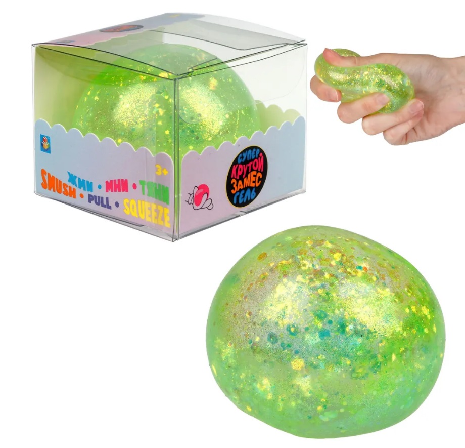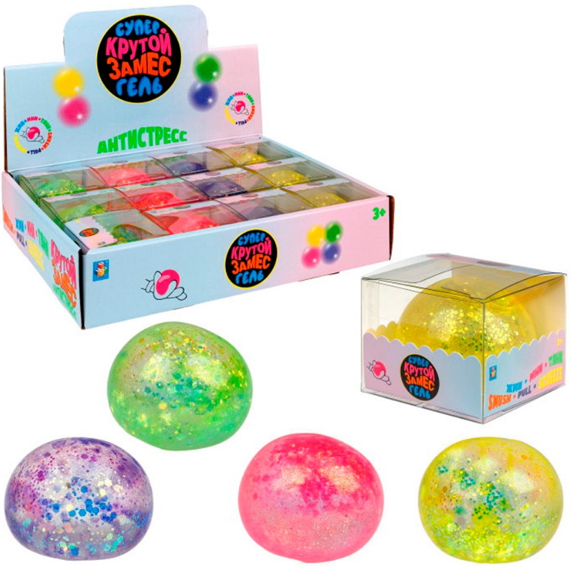 - Игрушка антистресс 1Toy Крутой замес Супергель шар с блестками 4 цвета в ассортименте Т24586