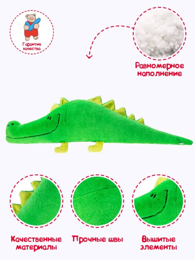 Игрушка мягкая "Крокодил" - мягкая и нежная, плюшевая игрушка в виде крокодильчика, которая очень понравится ребенку и взрослому из - за невероятно милого дизайна.