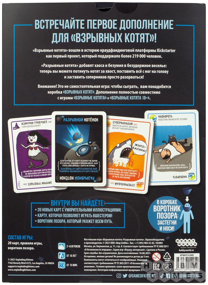 - Настольная игра Hobby World Взрывные котята: Разрывные котята (дополнение) арт. 915405
