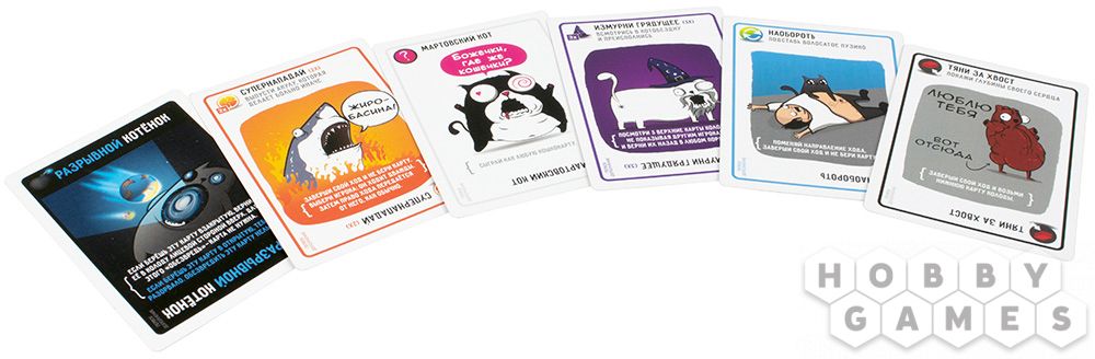 Каждый игрок получает на руки по восемь случайных карт, среди которых одна специальная карта "Обезвредь". С помощью этой карты вы сможете выжить, если вытащите взрывного котейку. Это самые ценные карты и их надо набирать побольше!