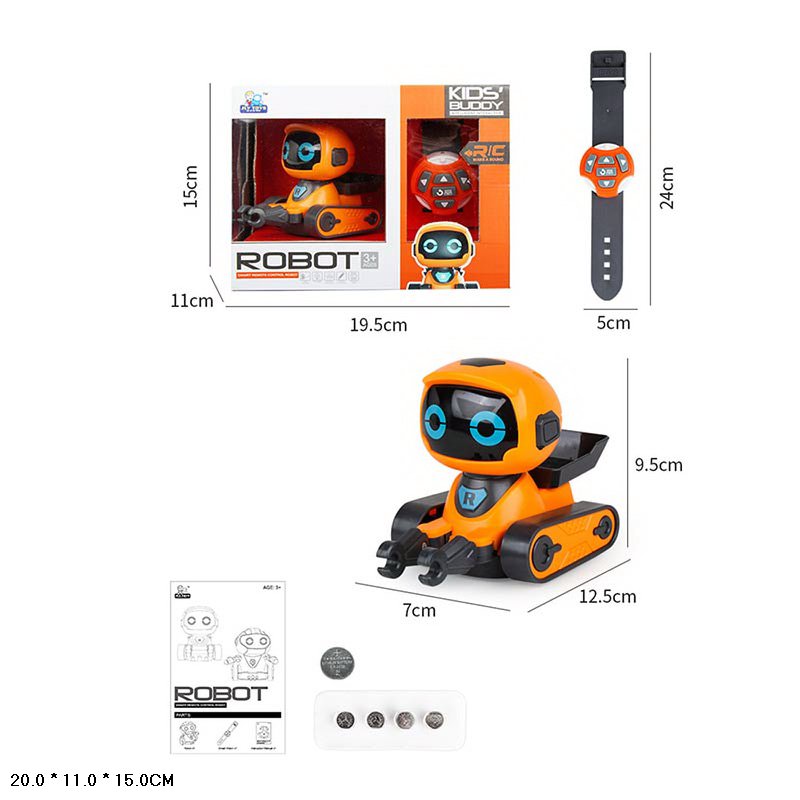Управляй игрушкой с помощью пульта управления в виде часов! Со звуковыми и световыми эффектами.