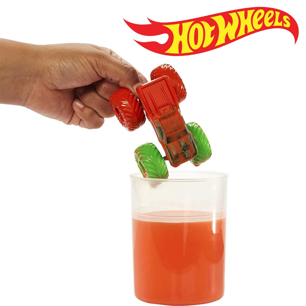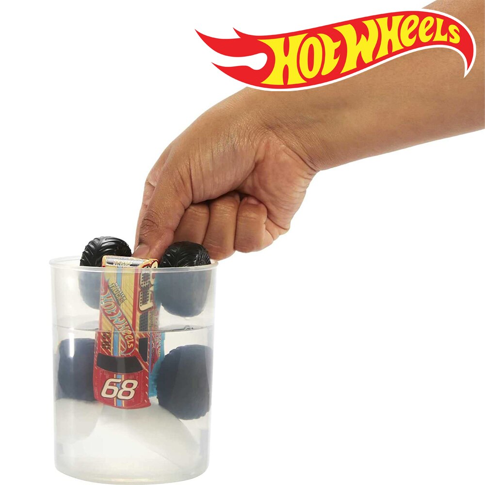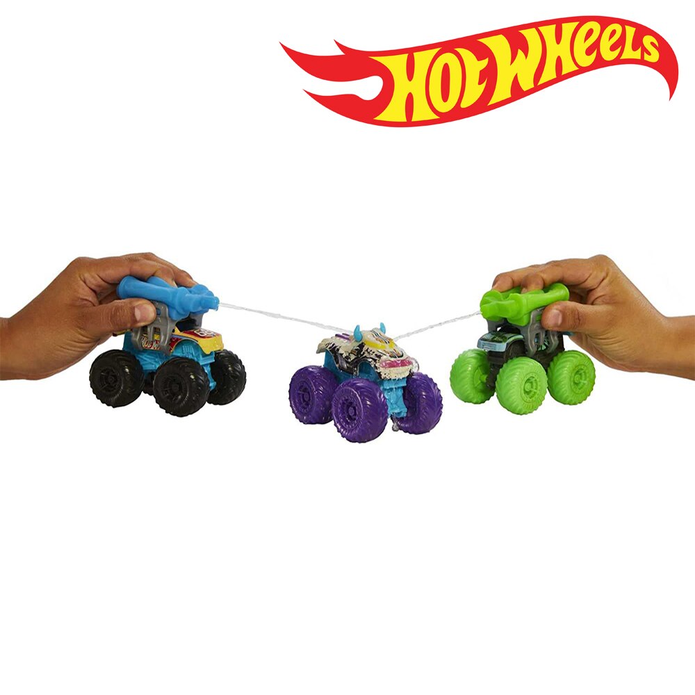 Используйте резервуар для воды с зажимом для распыления других горячих колесиков Monster Trucks Color Shifters с подходящей для температуры водой, чтобы изменить свои декоры, добавление милого бонуса в водную битву, чтобы сбивать и разбивать удовольствие!