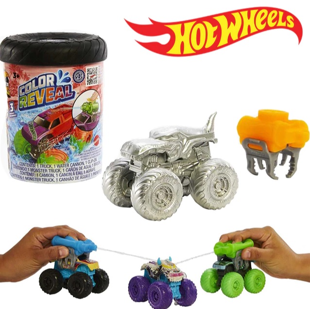 Включает 1 монстр-трак Hot Wheels Color Reveal™, 1 многоразовую бочку, 1 резервуар для воды и 1 зажим для резервуара с водой.