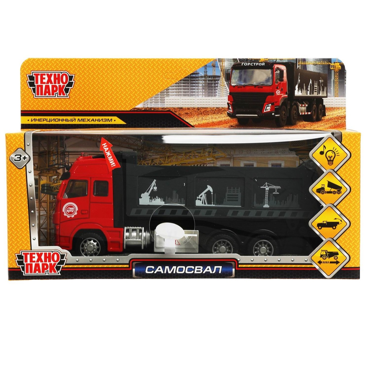 Металлическая модель, выполненная с учётом всех особенностей прототипа, обязательно понравится вашему ребёнку. Каждая деталь отлично проработана. Реалистичный дизайн данной модели плюс световые и звуковые эффекты позволят с головой погрузиться в игру, придумывая новые интересные сюжеты. Кроме того, эта игрушка познакомит малыша с видами спецтехники.