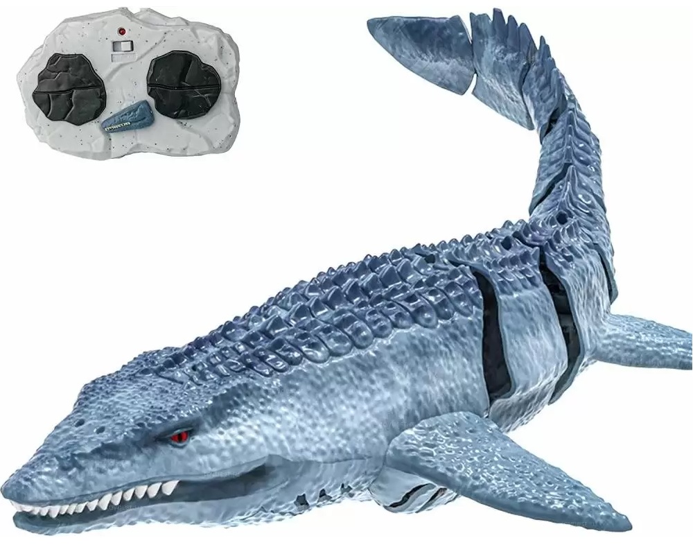Радиоуправляемый динозавр ZF Мозазавр (плавает в воде, акб) - 6667 - это реалистичная игрушка, которая действительно умеет плавать: делает развороты влево и вправо, движения вперед и назад, а также двигает туловищем и хвостовым плавником.