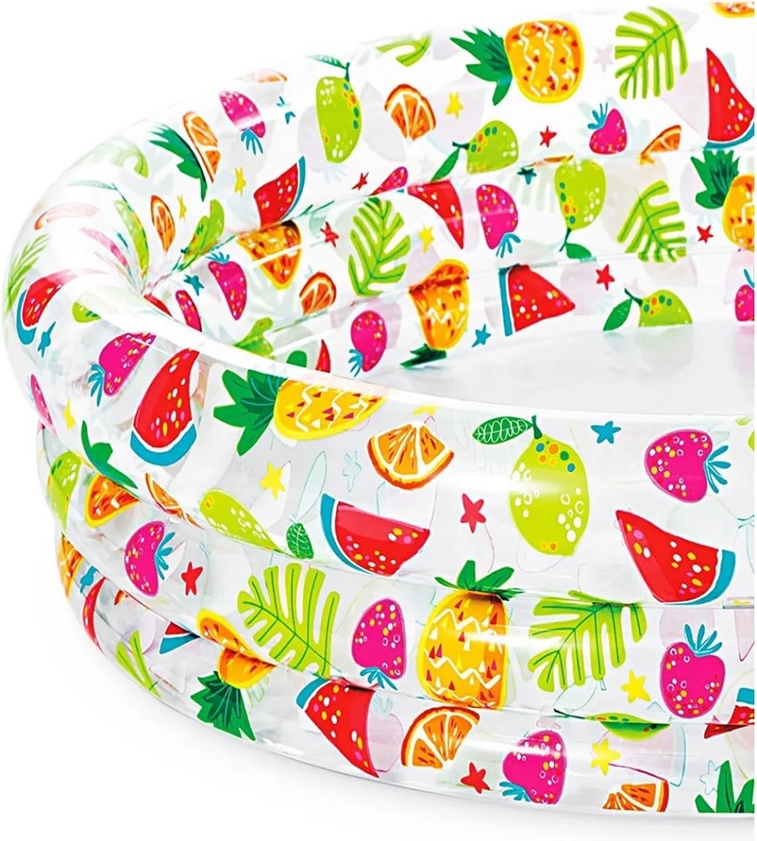 Невероятно красочный и яркий надувной бассейн Ананасы от компании Интекс предназначен для купания малышей от 3 лет.
