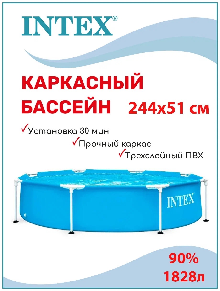- Бассейн Intex Metal Frame каркасный, круглый, без фильтр-насоса 244х51см 28205