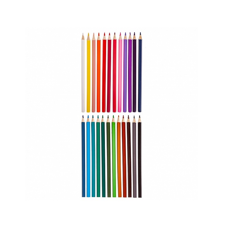 В наборе 24 шестигранных цветных карандаша с заточенным грифелем. Корпус изготовлен из высококачественной древесины, гладкость которой обеспечена многослойной покраской. Их удобно держать в руках, они легко затачиваются, имеют прочный грифель. Яркие насыщенные цвета оставляют мягкие штрихи и ровно ложатся на бумагу. Карандаши помогут юным художникам развить мелкую моторику рук, цветовое восприятие, фантазию и воображение. Упакованы в картонную лакированную коробку с петлей-европодвесом.