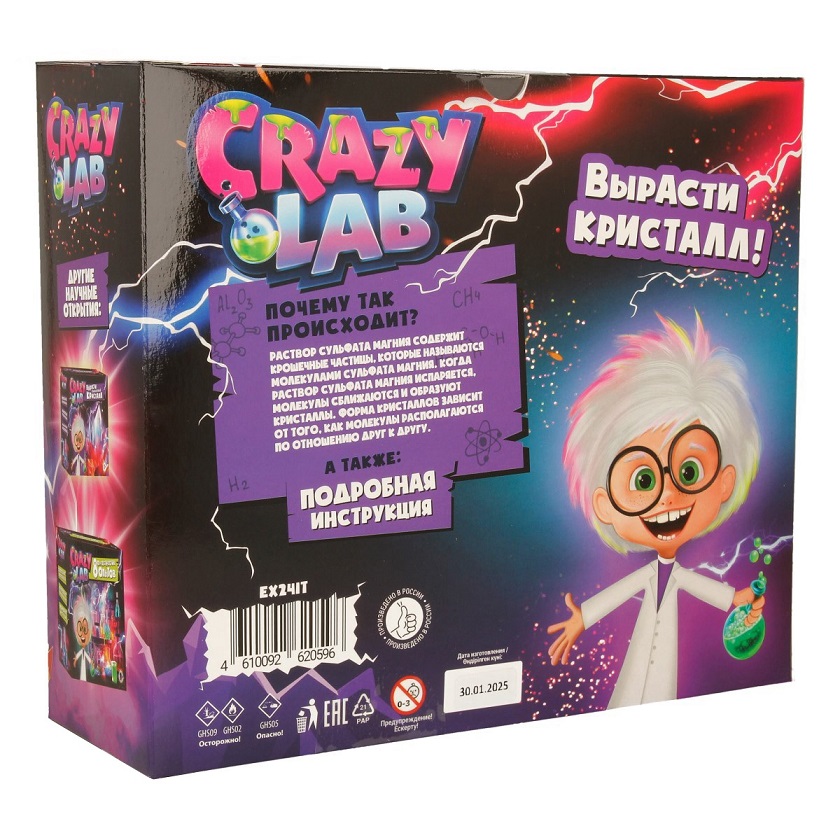 Набор опытов Crazy Lab Кристальная лаборатория позволяет ребенку вырастить удивительный кристалл из сульфата магния.