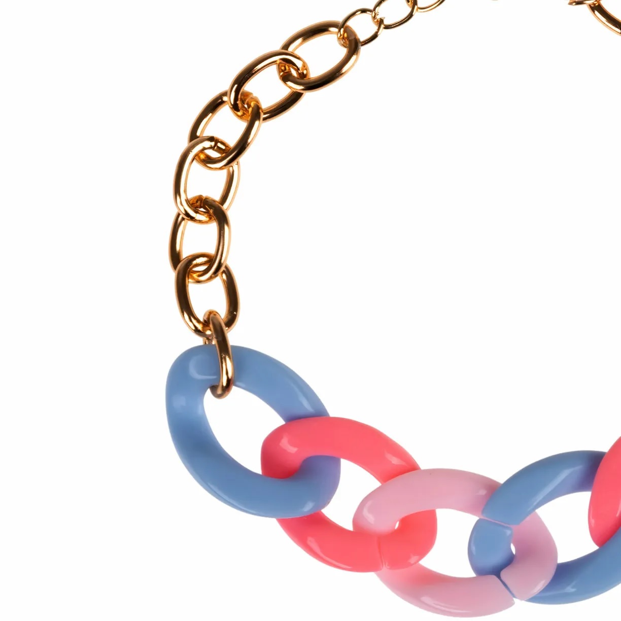 Радужный браслет на руку от Lukky Fashion выполнен в виде цепочки золотого цвета и глянцевого пластика в ярких радужных оттенках.