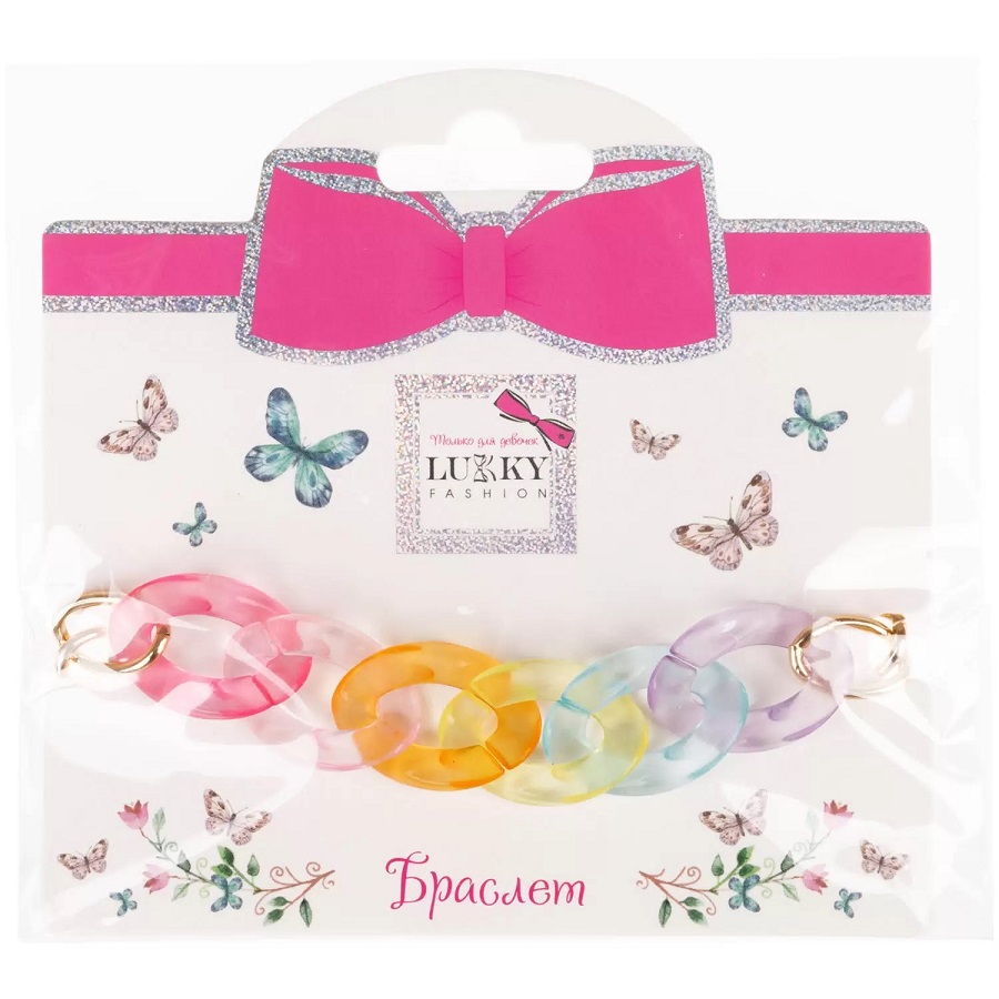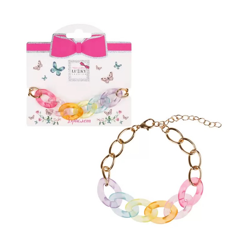 Нежный и стильный браслет от Lukky Fashion выполнен в виде цепочки из металла и прозрачного пластика.Микс пастельных оттенков придаст особую нежность и утонченность.