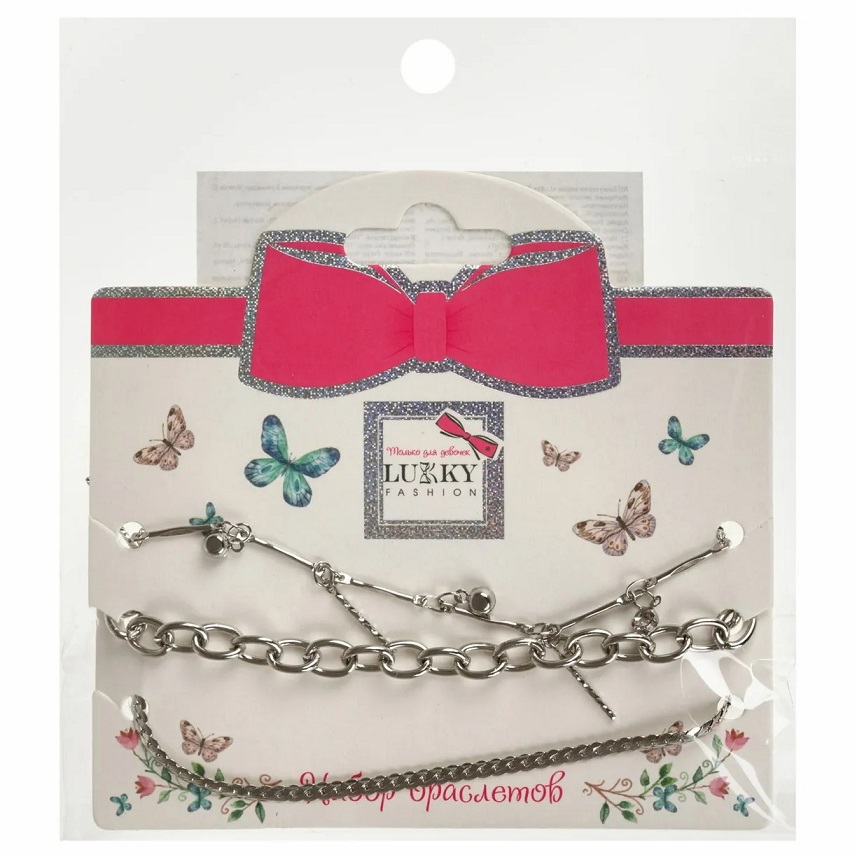 - Набор браслетов-цепочек Lukky Fashion серебряного цвета на руку и на ногу 3 шт Т24683