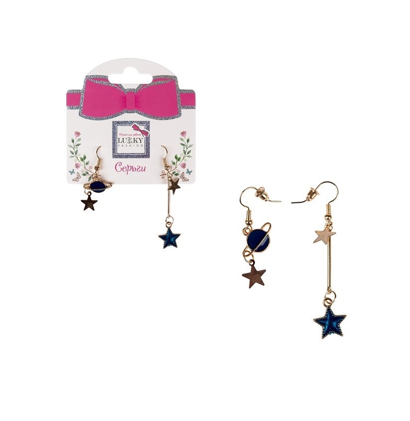 - Серьги-гвоздики Lukky Fashion с подвесками металл+эмаль Космос Т24709