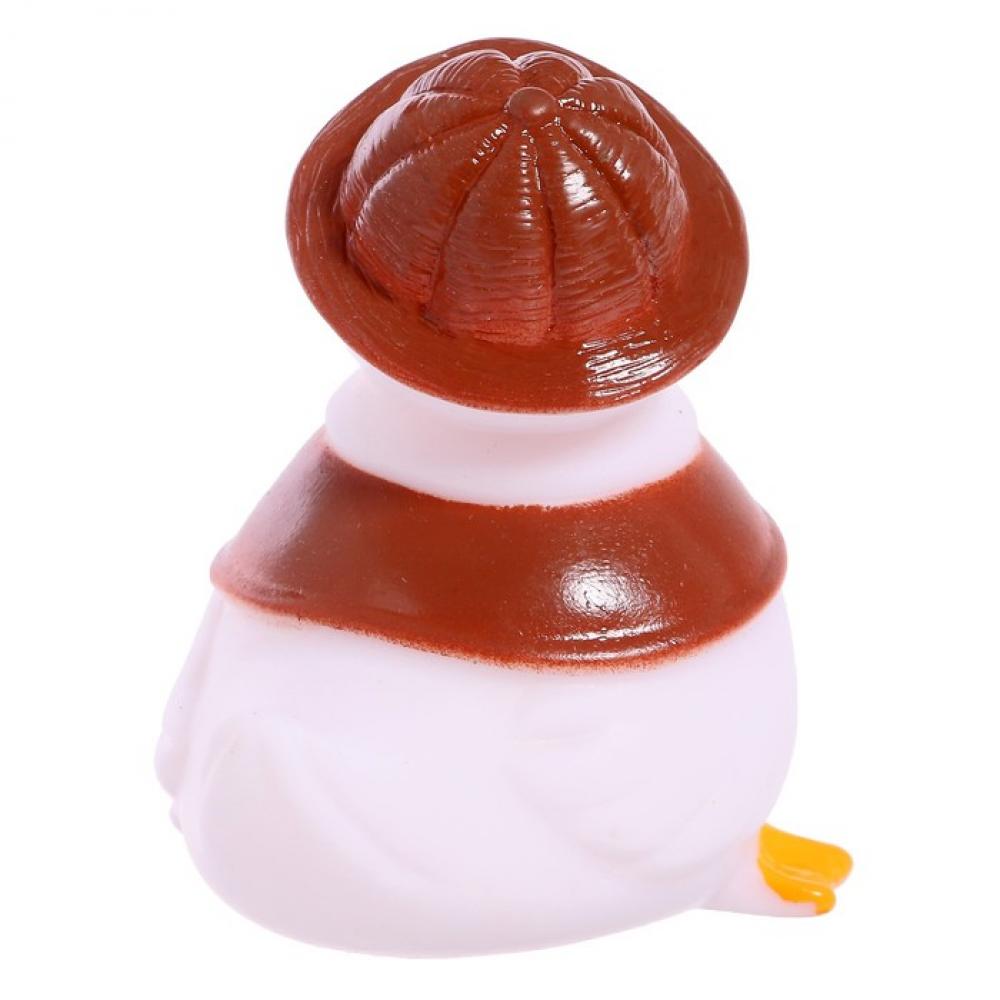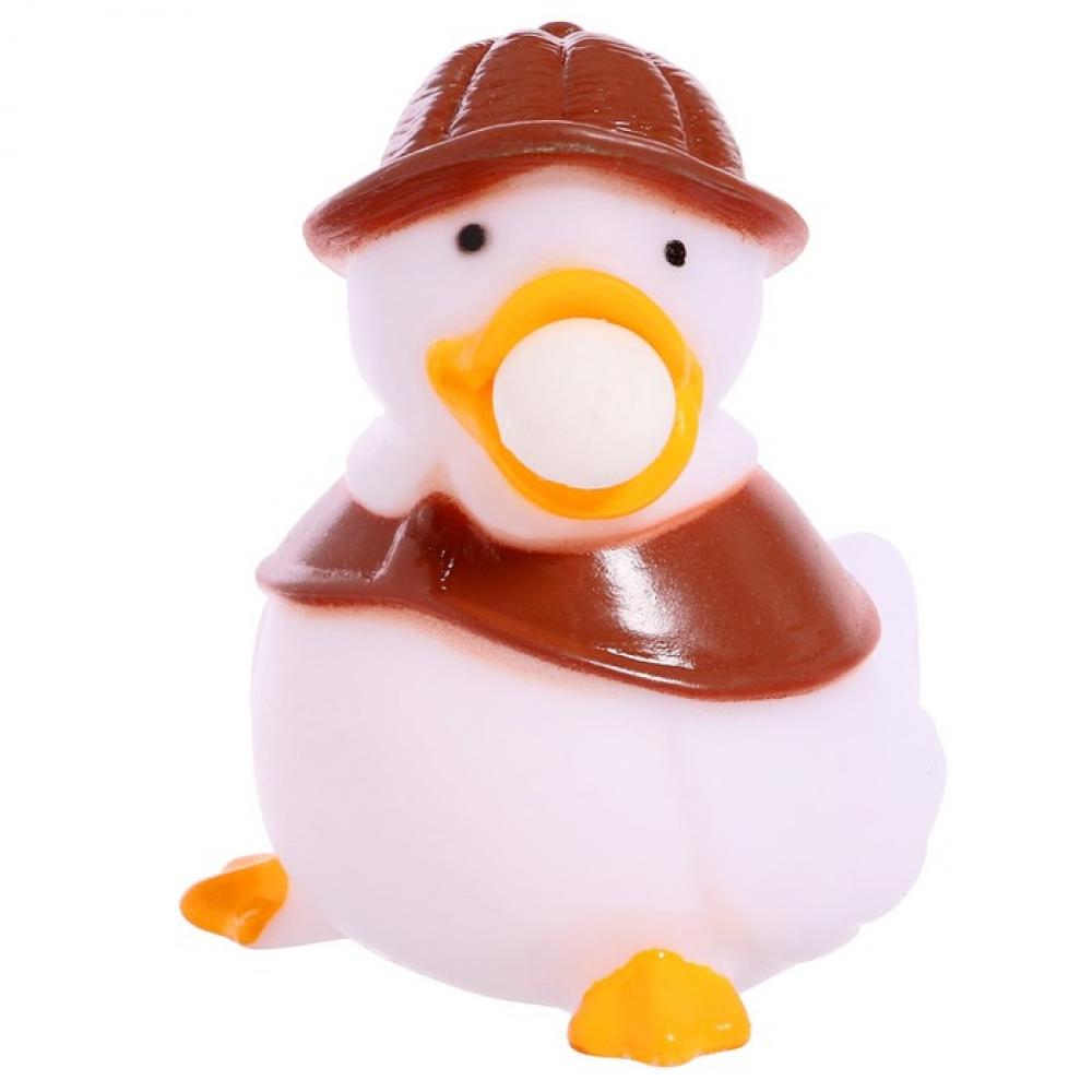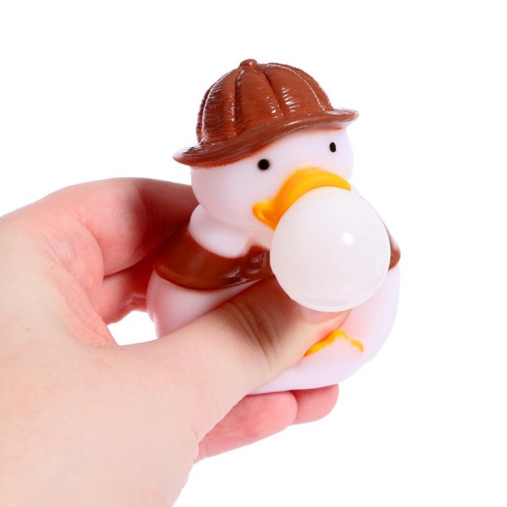 При сжатии уточка надувает пузырь из жевательной резинки.