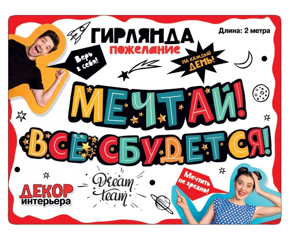 - Гирлянда из картона Мечтай! Всё сбудется! 200 см 071.095