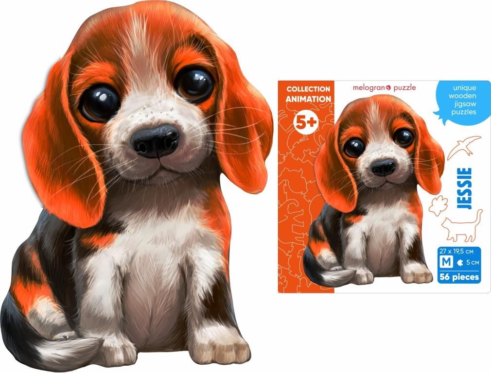 Мелограно пазл - это замечательная игрушка как для взрослых, так и для детей. Они помогают развивать моторику рук, творческое и логическое мышление. К примеру, пазл с изображением собаки Джесси М состоит из 56 деталей и подходит для новичков. Размер собранного пазла составляет 27х19,5 см, а фигурные детали имеют средний размер 2-3 см.