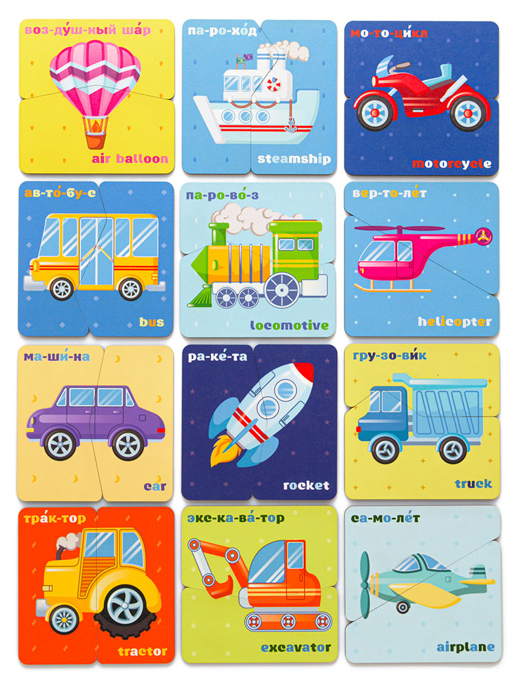 Иллюстрации на пазле яркие и реалистичные, на русском и английском языке.